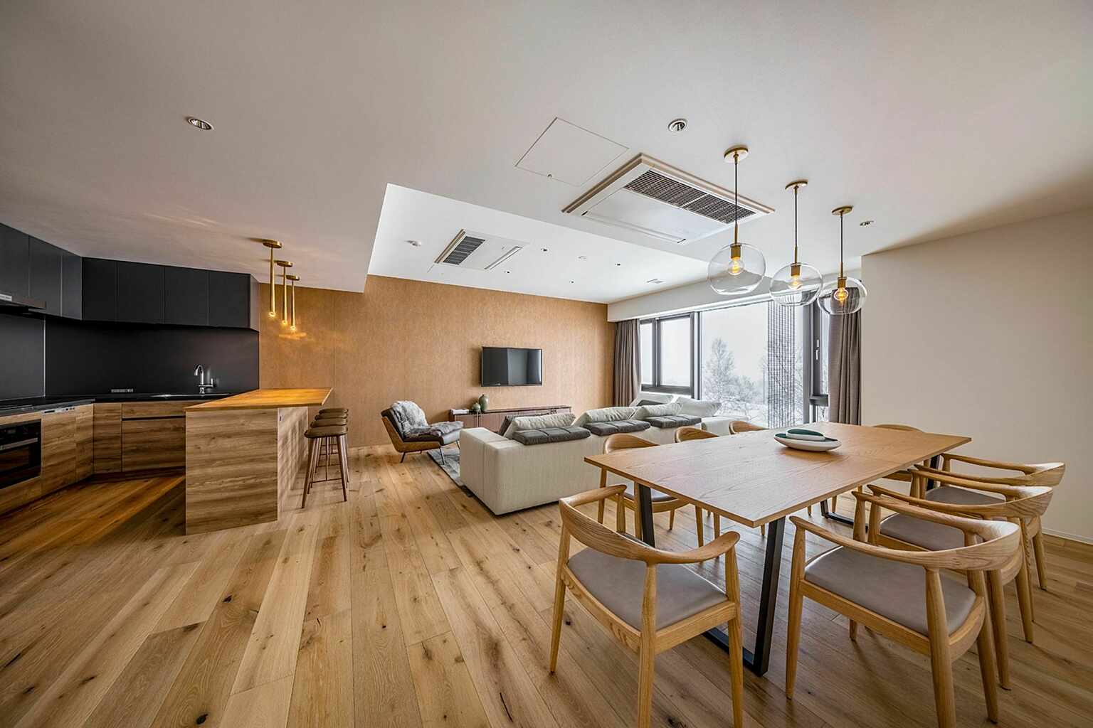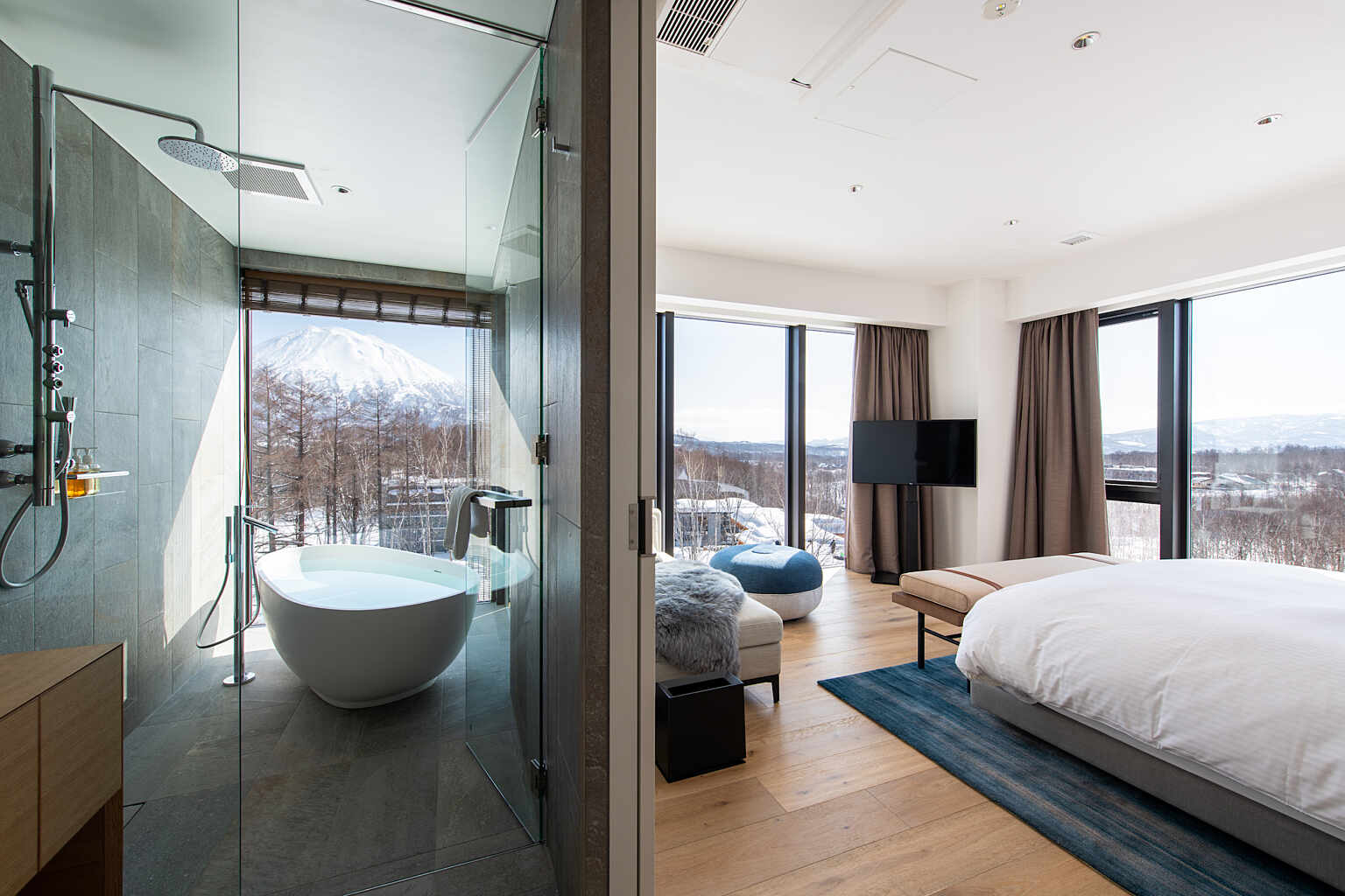 From sleek studios to expansive penthouses, every residence is designed with floor-to-ceiling windows that frame breathtaking views of Mount Yotei or the surrounding forest. Families and groups will appreciate the option of interconnecting rooms, while every unit includes thoughtful, modern amenities to make you feel right at home.