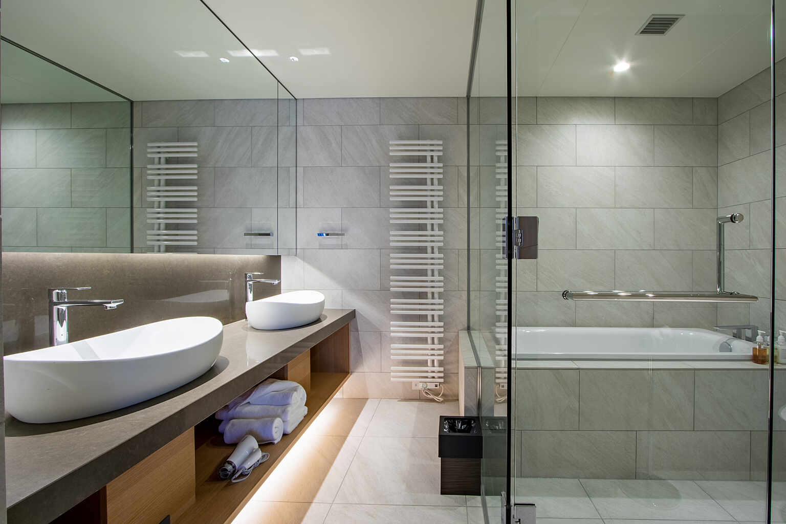 What an amazing hotel. Probably the best room I've ever experienced in a hotel. On piste view, bright open space, and perfectly laid out. Hotel facilities are great, and ski in and out is an amazing perk. The restaurant is nice and the deal having Rhythm rental returns was so convenient. Top class all round.