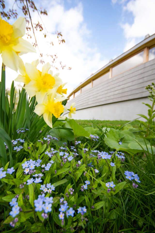 併設されているカフェでは美容を意識したサンドイッチなどの軽食やドリンクが味わえます。自然と調和した美しいS字型の建築は、国内外で幅広く活躍する建築家、長谷川豪氏が担当し、ランドスケープデザイナーの宇津木英俊氏によるガーデンエリアには、菜園と庭園が混在し、春には圧巻の桜並木が目を楽しませてくれます。