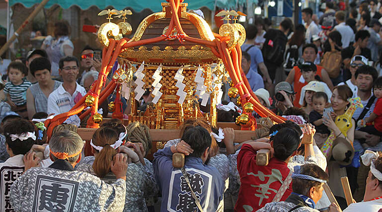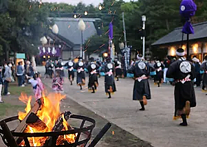 内容| 豊作と海の安全を祈願し、古くから受け継がれてきたお祭りです。美国神社で行われるこの名物祭りは、夜になると一層賑やかになります。天狗や神輿の火渡りはとくに見所で、火の粉が舞う中を突き進む姿は迫力満載です。